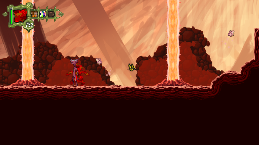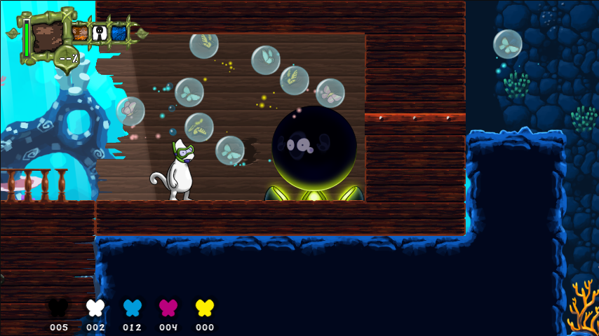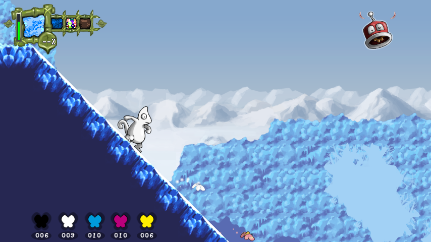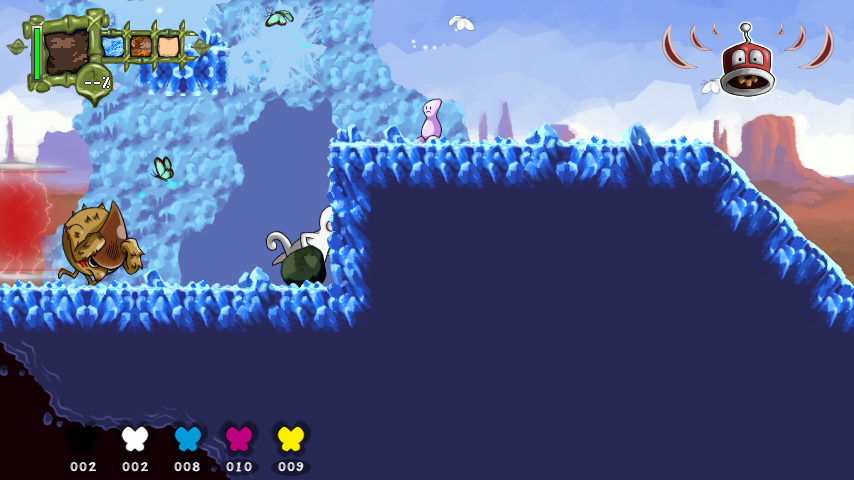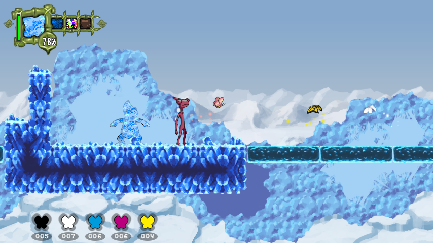 “Camouflages” is the big concept here. This function lets players mimic elements of scenery to hide from enemies. The higher your “Camo Percentage”, the lesser chance there is that enemies will detect you. Camouflages can be obtained at a store or by painting them with a paint tool. Both require the color butterflies collectible.