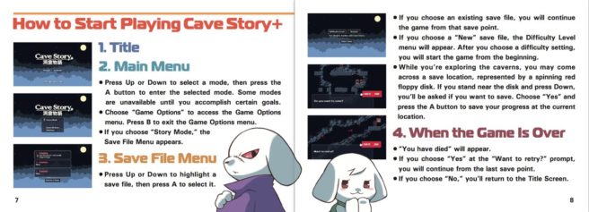 One of the goodies included with the physical version of Cave Story+ is a full-color instruction manual. On its Twitter account, Nicalis gave a small preview (see above). The company promises that it’s packed with “top-secret info”.