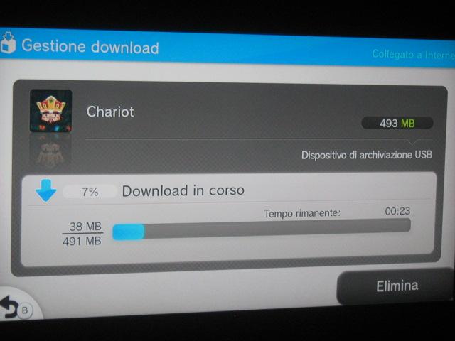 The latest Wii U file size is for Chariot, which should be launching in Europe early next month. You’ll need to reserve 493 MB for the download. Note that the size may vary slightly by region.