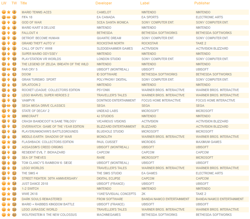 UK software sales (Week ending 6/2/2018) – Switch/Wii U/3DS charts