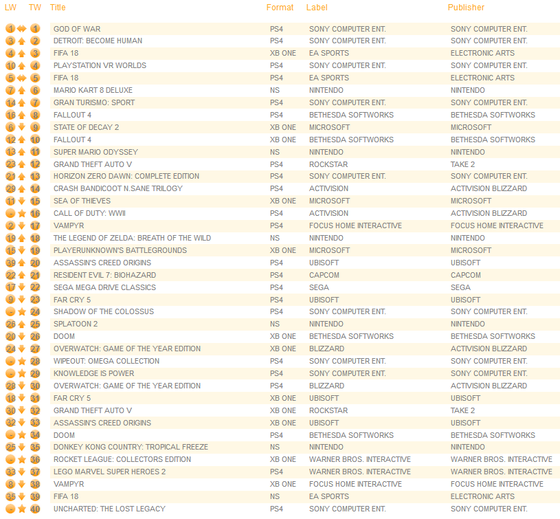 UK software sales (Week ending 5/26/2018) – Switch/Wii U/3DS charts