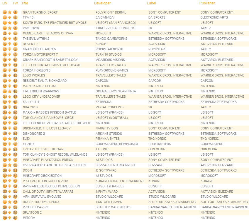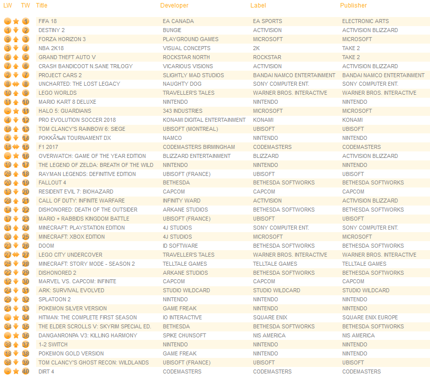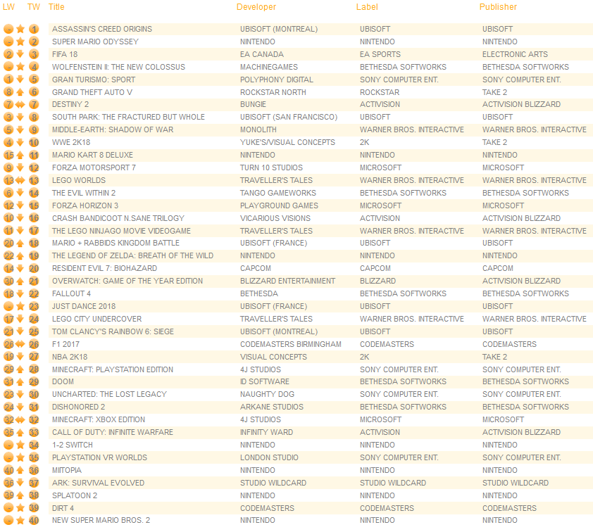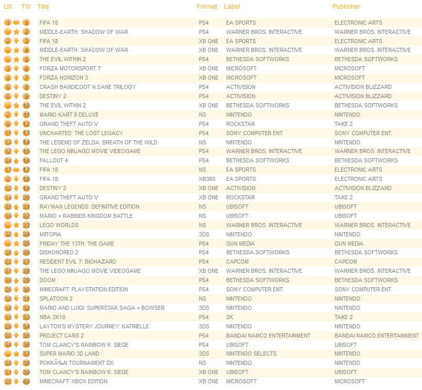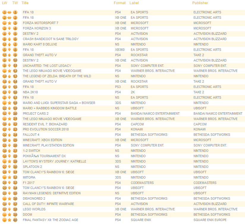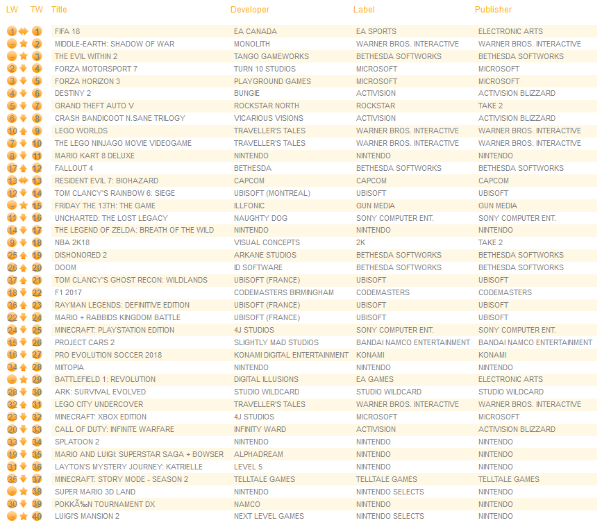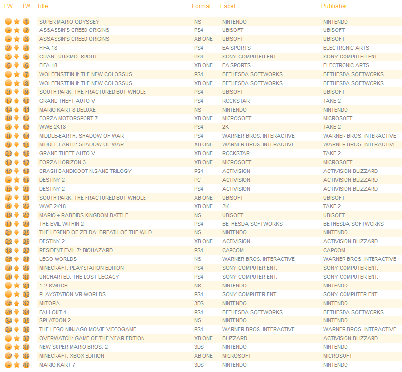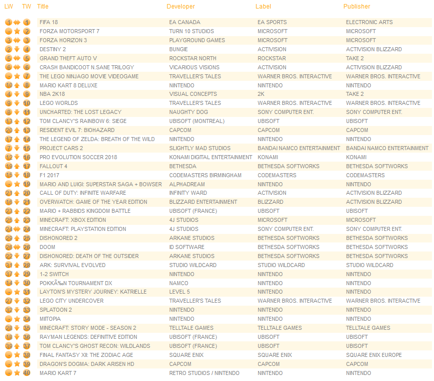 UK software sales (Week ending 10/14/2017) – Switch/Wii U/3DS charts