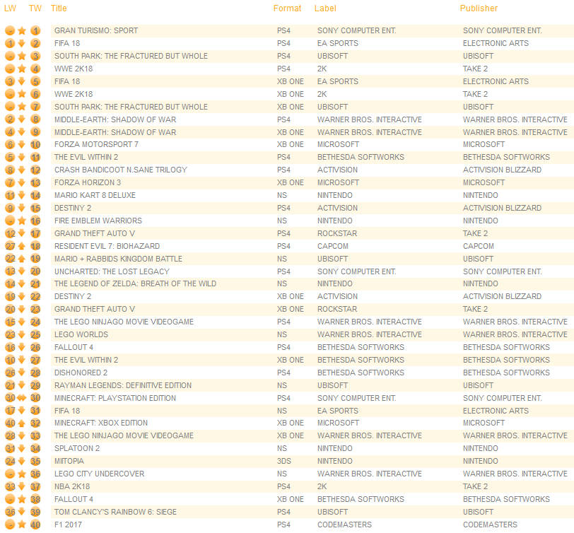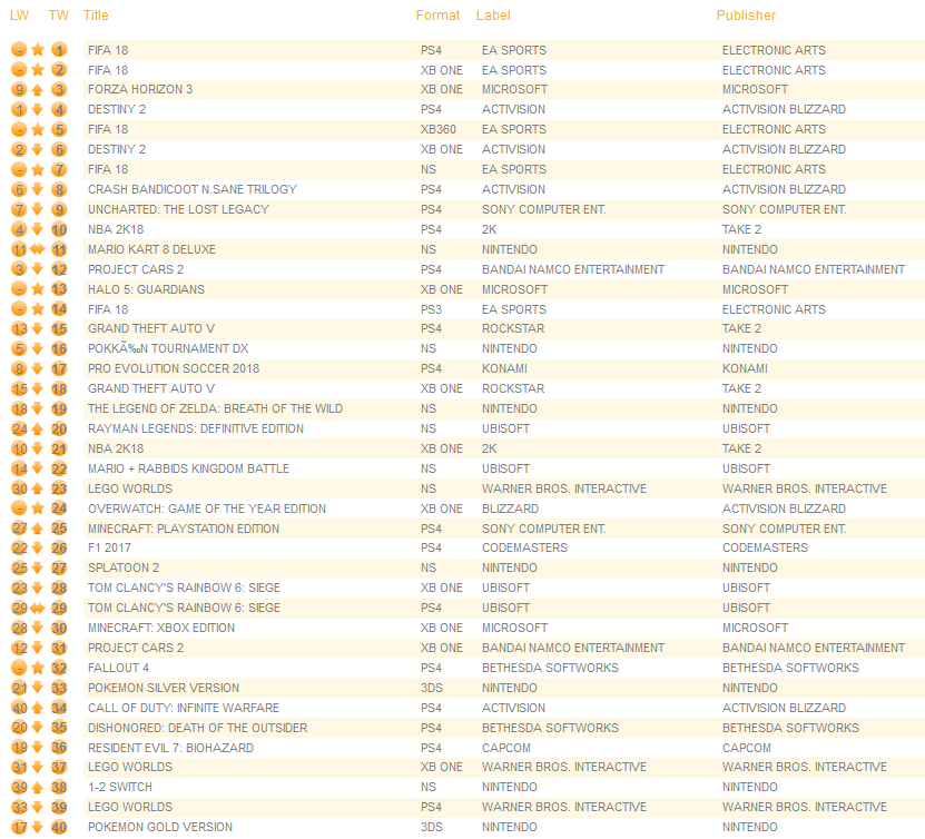 UK software sales (Week ending 10/21/2017) – Switch/Wii U/3DS charts