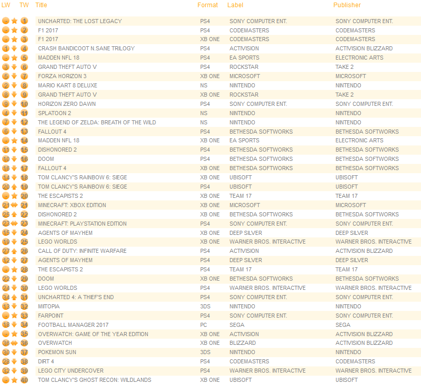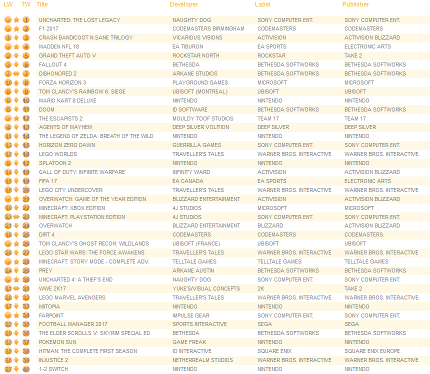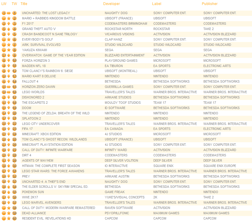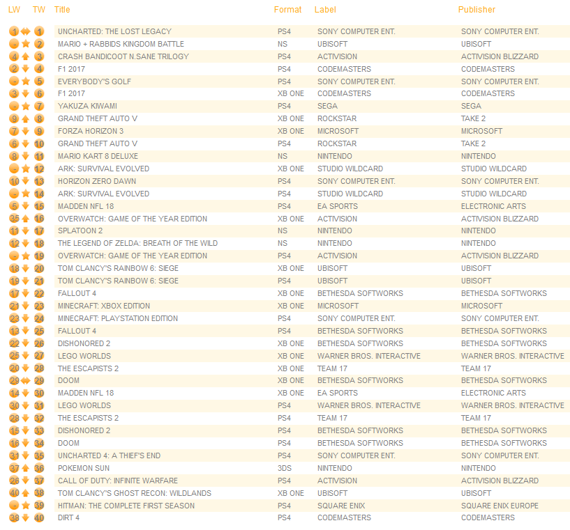UK software sales (Week ending 9/2/2017) – Switch/Wii U/3DS charts