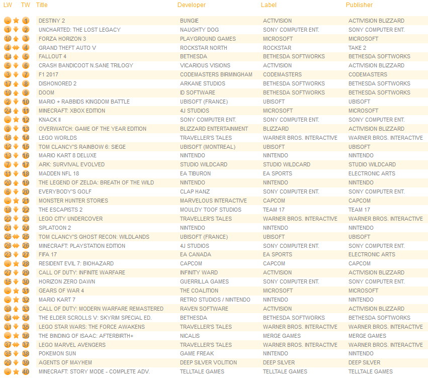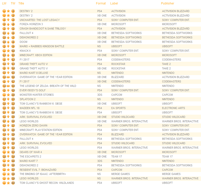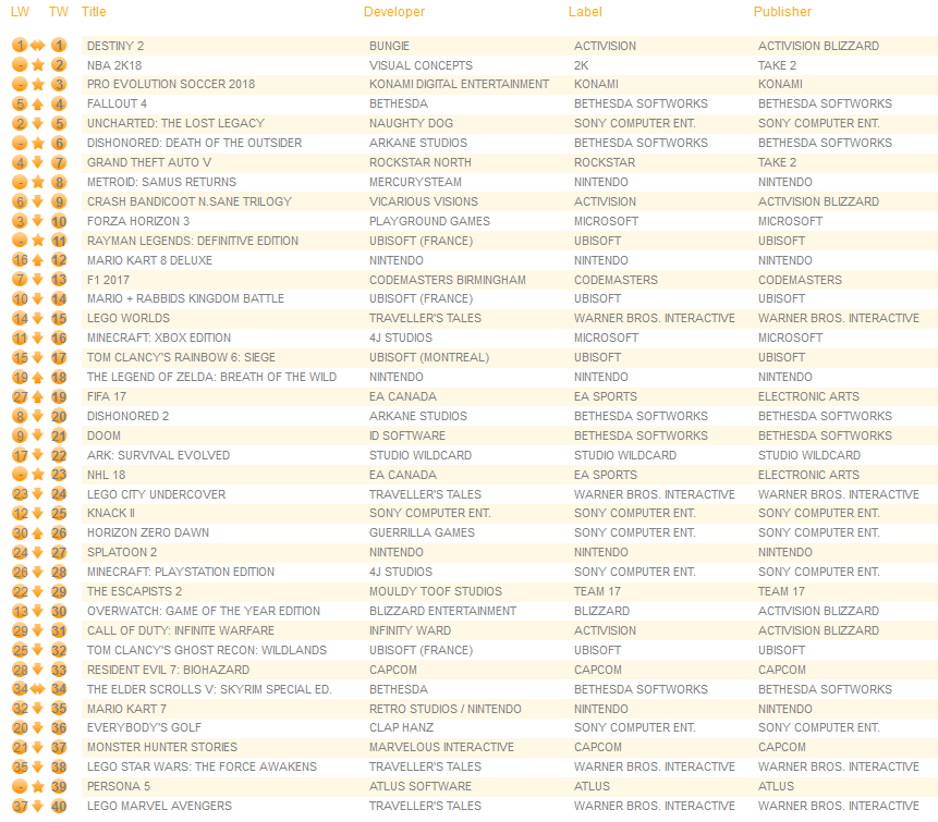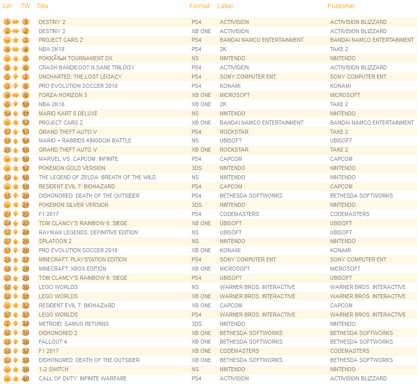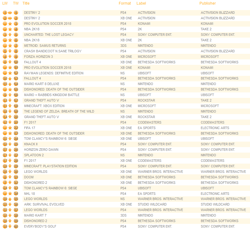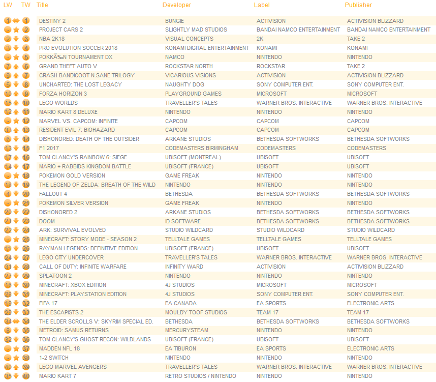 UK software sales (Week ending 9/23/2017) – Switch/Wii U/3DS charts