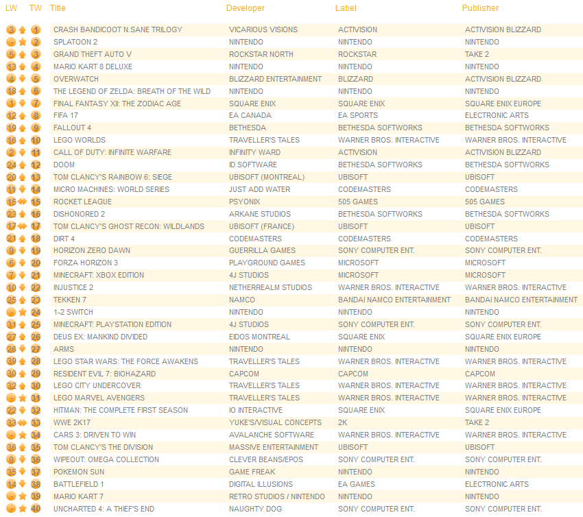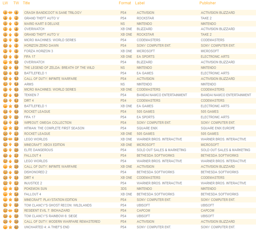UK software sales (Week ending 06/24/2017) – Switch/Wii U/3DS charts