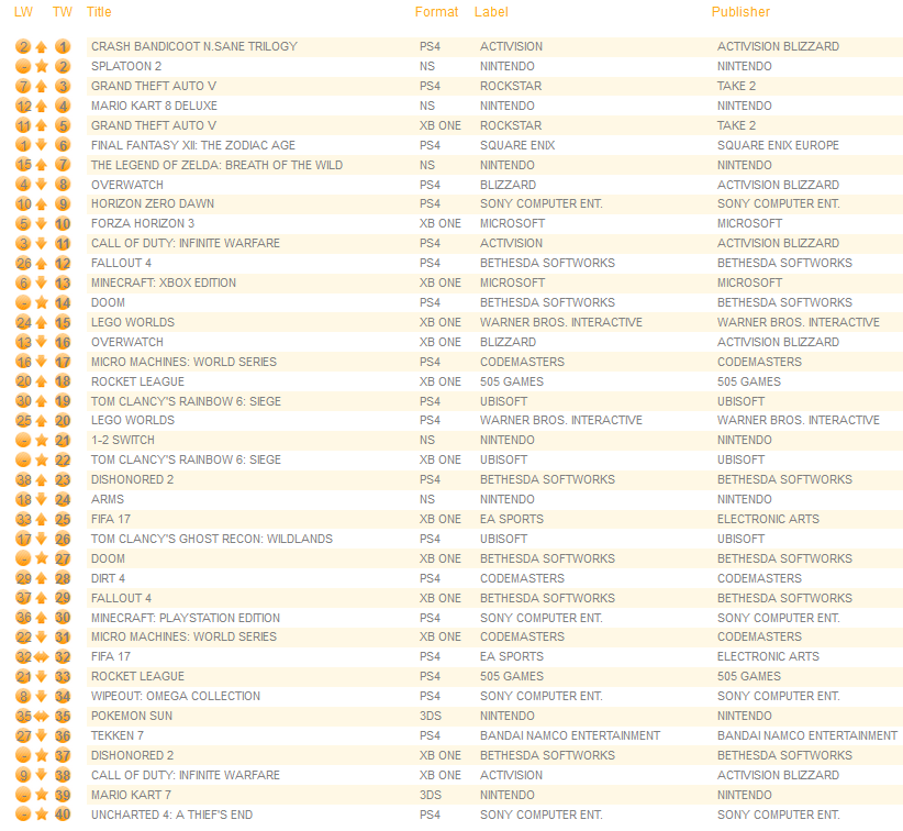UK software sales (Week ending 7/1/2017) – Switch/Wii U/3DS charts