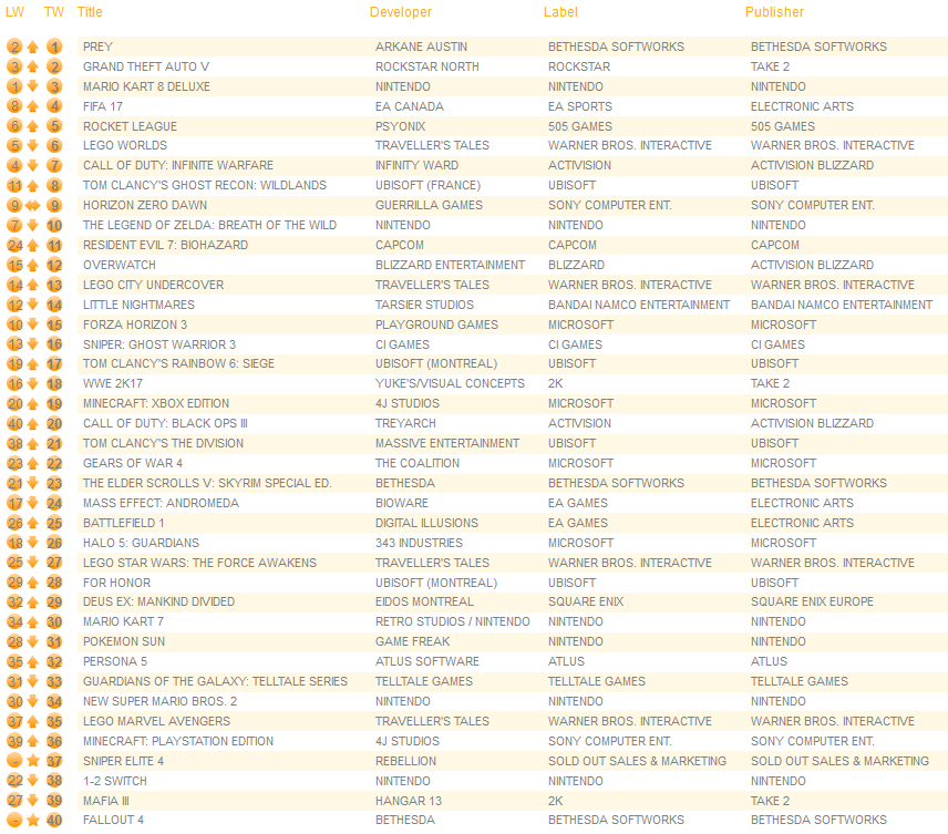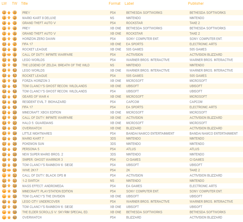 UK software sales (Week ending 04/29/2017) – Switch/Wii U/3DS charts