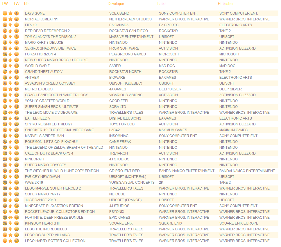 UK software sales (Week ending 4/20/2019) – Switch/Wii U/3DS charts