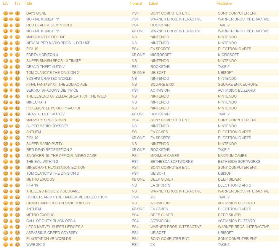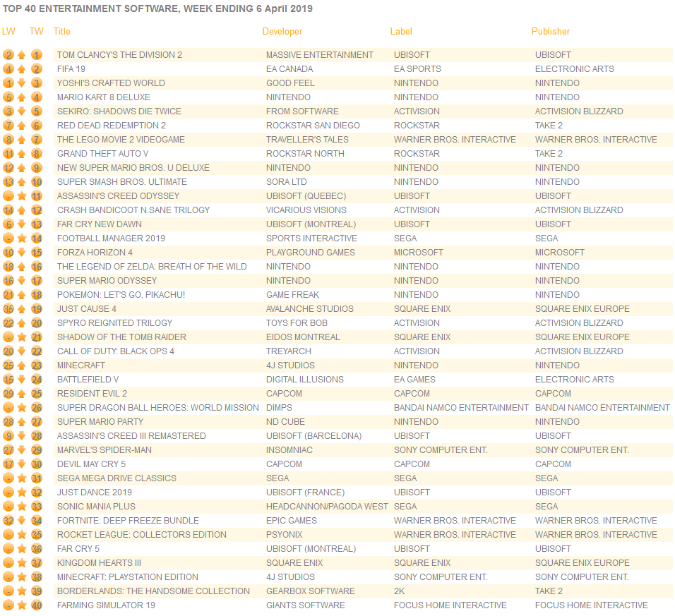 UK software sales (Week ending 4/6/2019) – Switch/Wii U/3DS charts