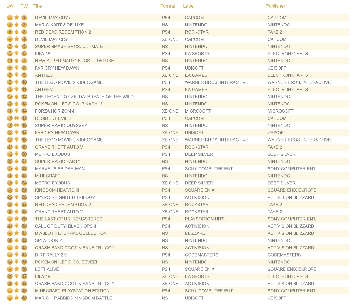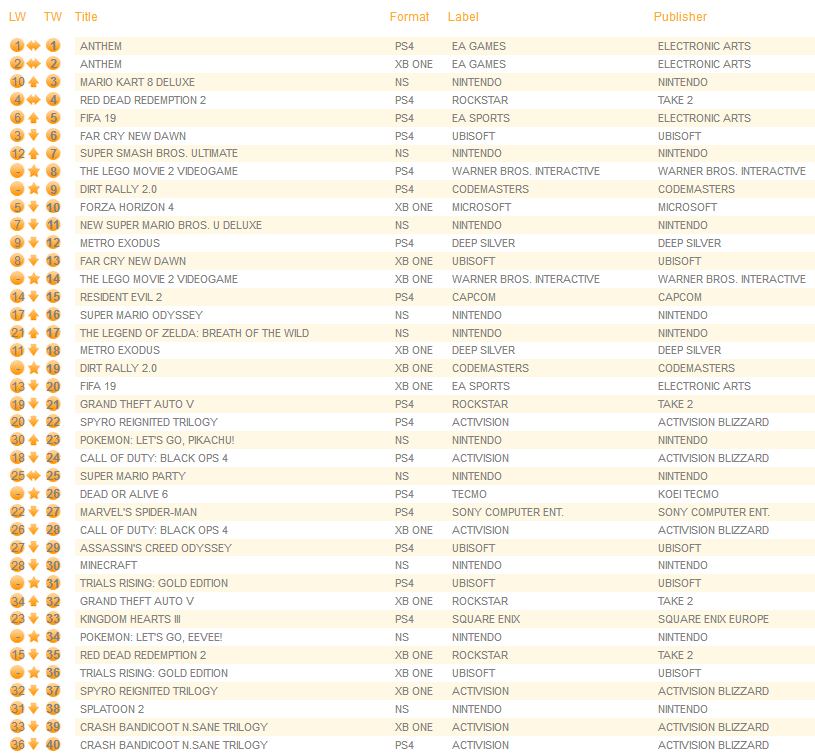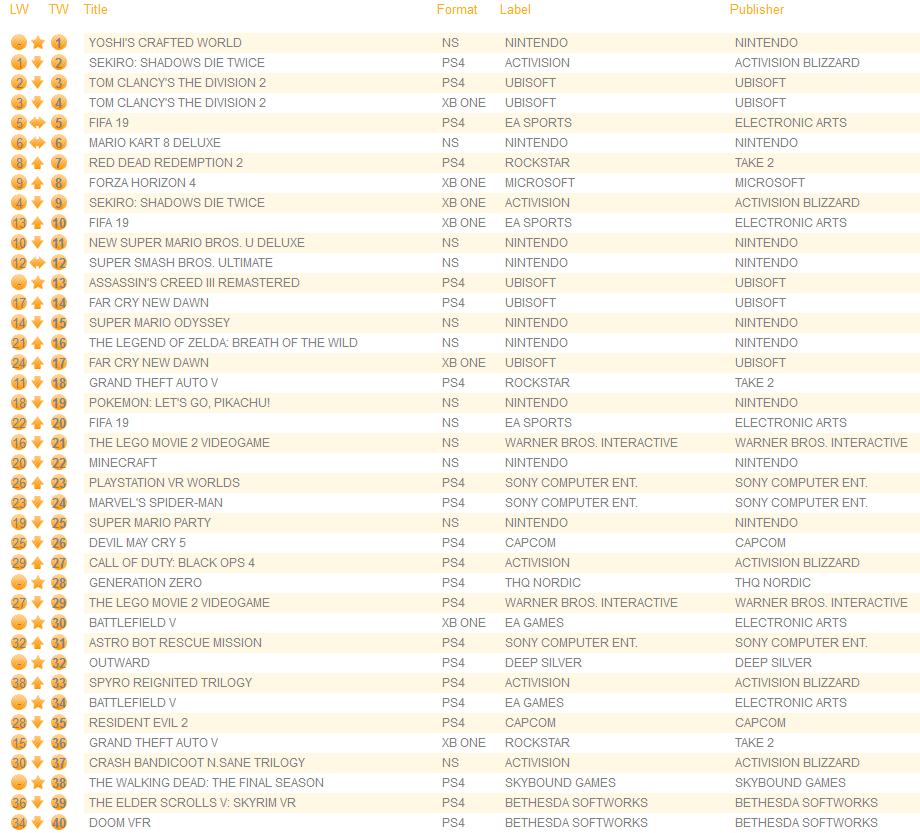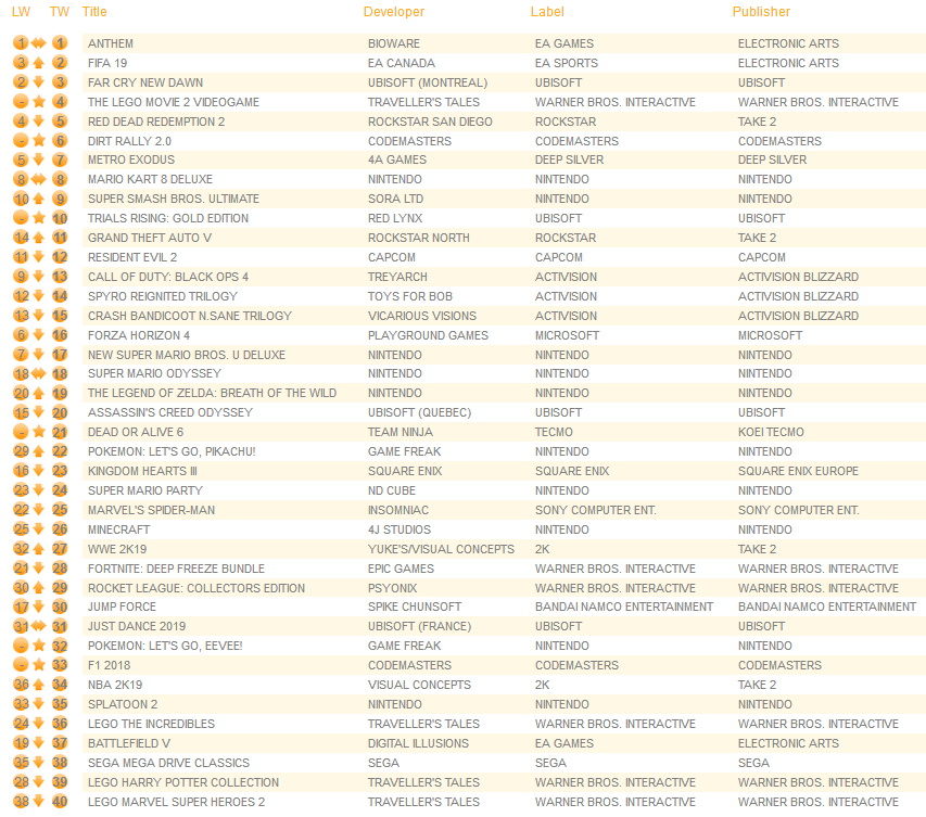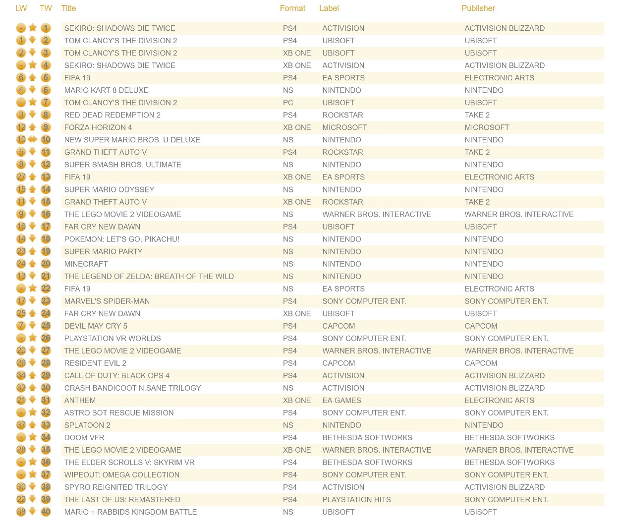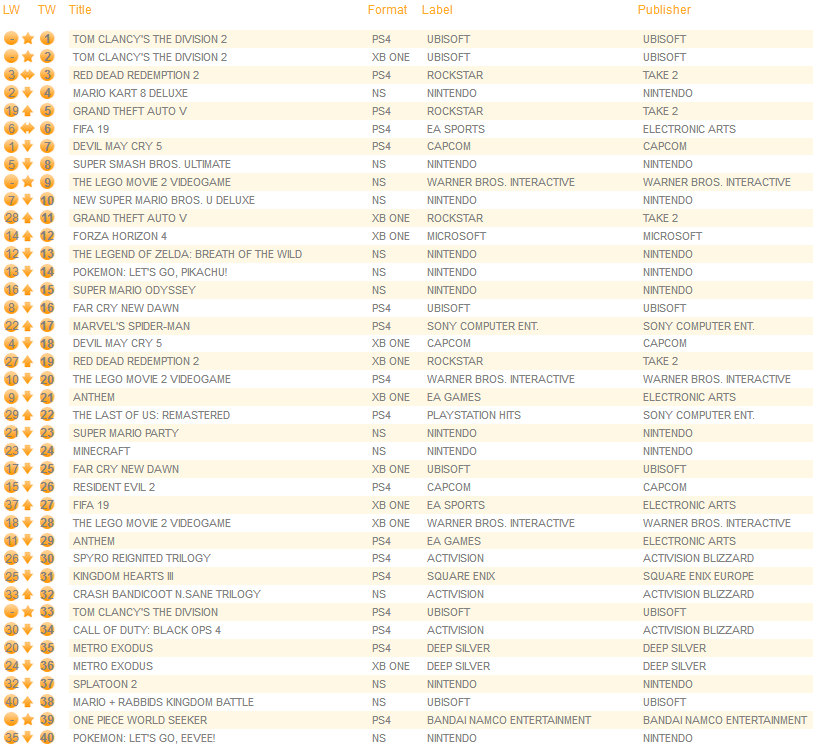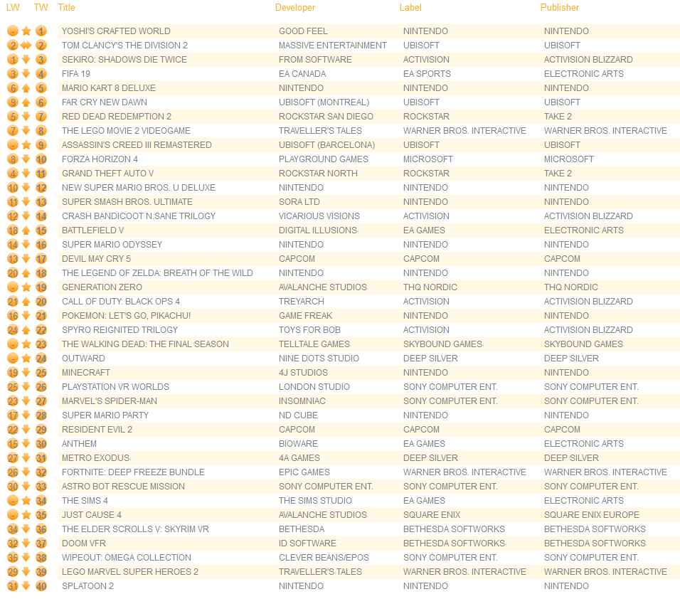 UK software sales (Week ending 3/2/2019) – Switch/Wii U/3DS charts