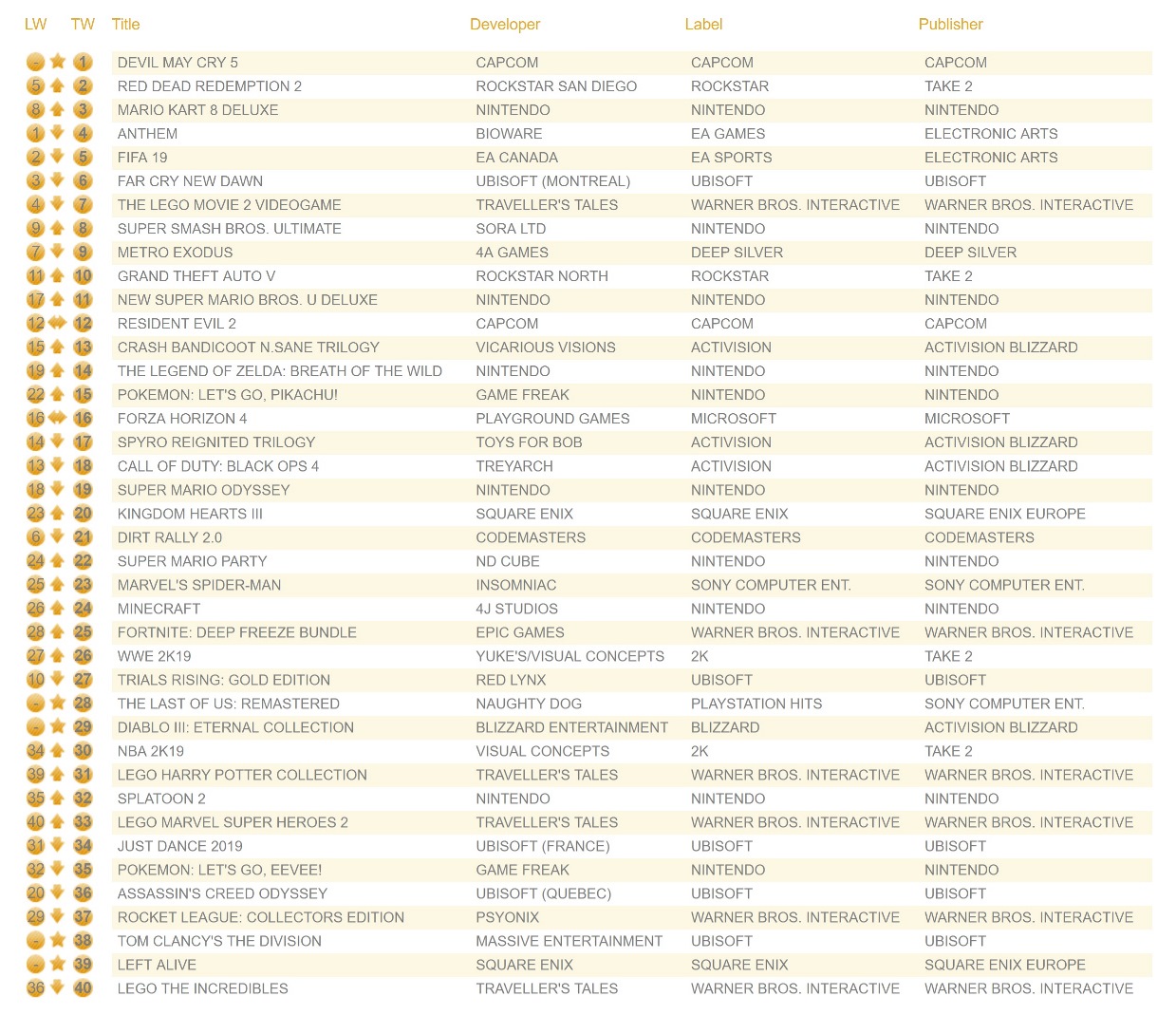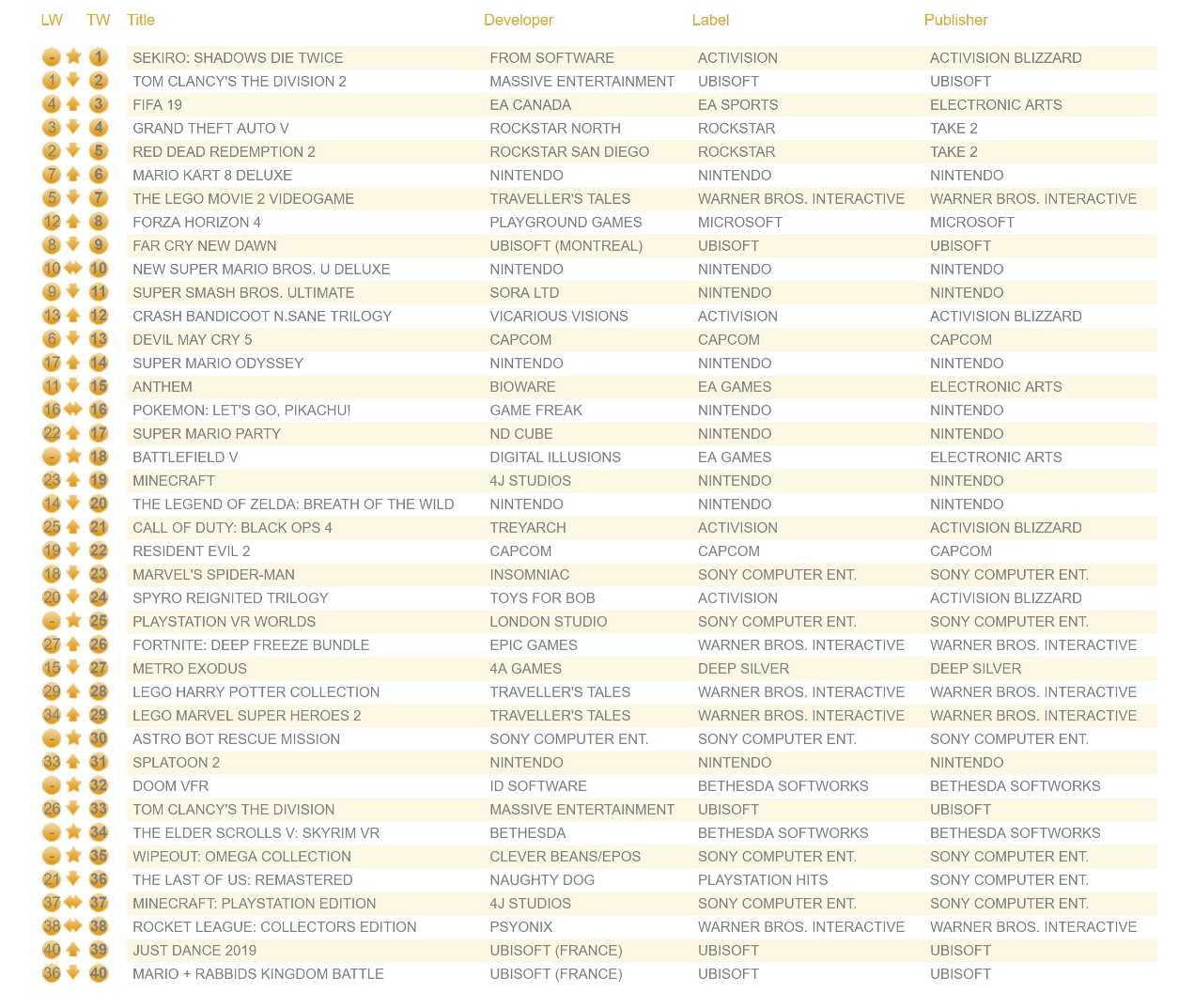 UK software sales (Week ending 3/16/2019) – Switch/Wii U/3DS charts