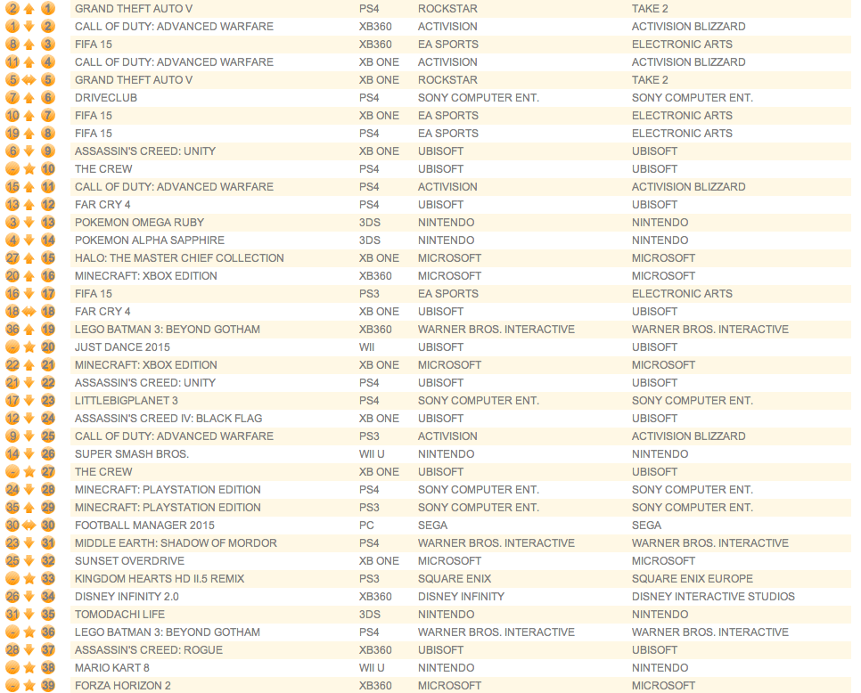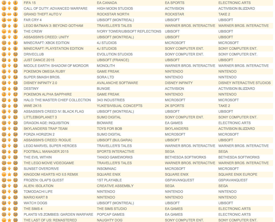 UK software sales (Week ending 11/15/14) – Wii U/3DS charts