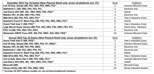 December 2013 NPD: top 10 best-selling games in the U.S., annual top 10 for 2013