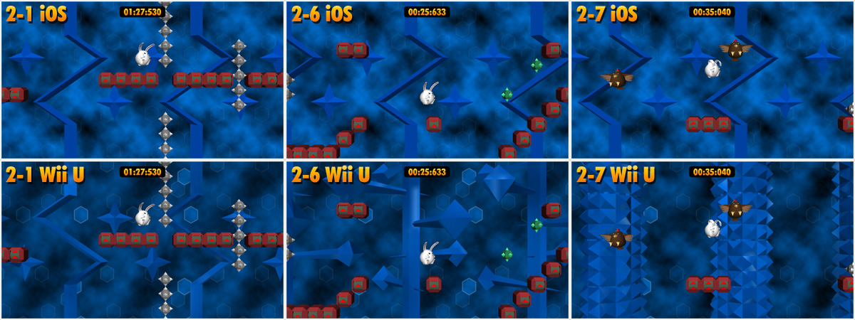 Dahku Creations has released a few screenshots from Chubbins on Wii U, which we’re told is tentatively slated for release in May. Among the images is a comparison showing improved backgrounds over the iOS version.
