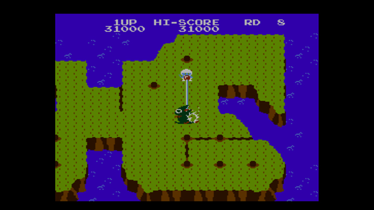 “Dig Dug has decided to take a vacation on a remote island, but the Pooka and Fygar won’t give him the chance to rest! In each round, clear out the enemies by inflating them until they burst or by digging up traps for them to fall into. But be careful that you don’t get too close to their attacks or fall into your own traps!”