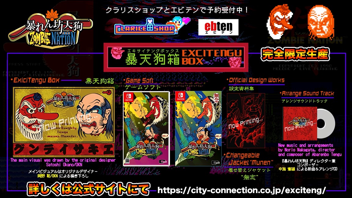 City Connection has announced Abarembo Tengu & Zombie Nation, a revival of two titles from the Famicom/NES era. A release is planned for October 28.