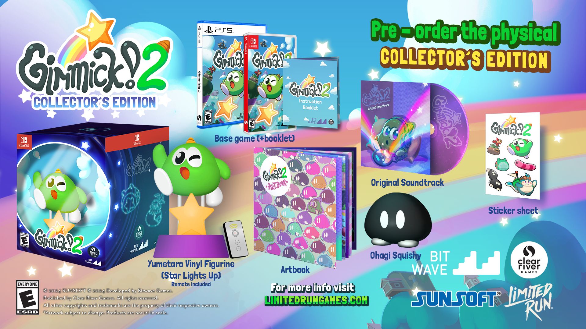 Gimmick 2 will be sold standalone, but it’s also planned as a collector’s edition. The latter includes the game, a light-up Yumetaro vinyl figurine, an art book, CD soundtrack, and more.