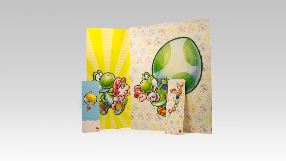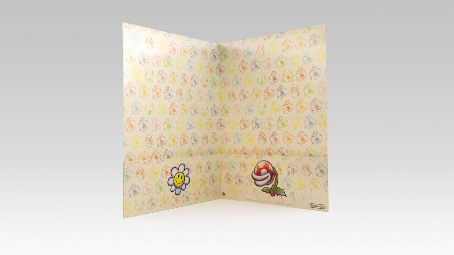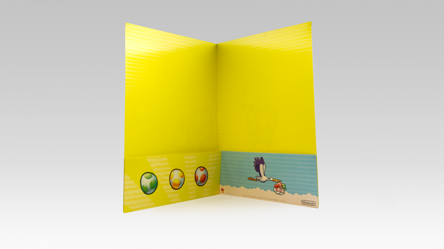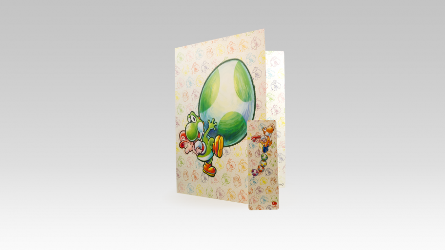 The reward features two card folders featuring Yoshi, Baby Mario, and other characters from Yoshi’s New Island. A couple of bookmarks are included as well.