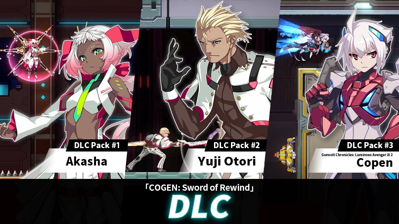 Three different pieces of content are planned. Akasha (or Akaza), Yuji Otori, and Copen from Gunvolt Chronicles: Luminous Avenger iX 2 will be offered as separate packs. Each DLC makes these characters playable and includes an extra story.