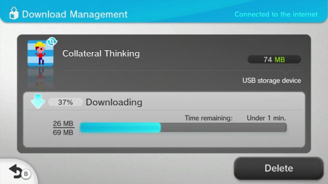 Collateral Thinking is lined up as one of the new Wii U eShop releases this week. Thankfully, it won’t take up much space. The download clocks in at just 74MB.