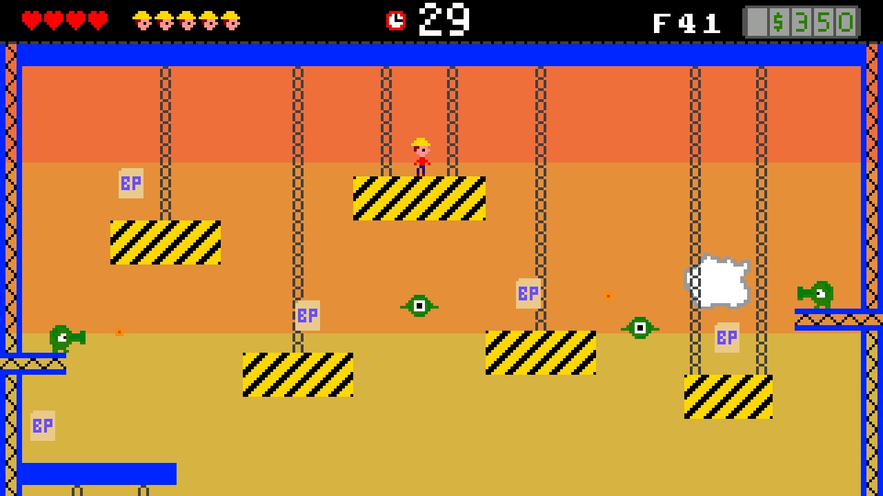 “Collateral Thinking is an arcade-style action platformer for Wii U that’s all about beating up alien ghosts, recovering blueprints, and rescuing billionaires on a tight schedule (and budget). Each level is a self-contained screen that gives you one of three specific tasks to complete in 30 short seconds – to “Avoid” all the hazards, to “Bust” all the enemies, or to “Collect” all the blueprints. These quickfire challenges force you to quickly survey your surroundings and then jump into action in order to progress through the 100+ floors and net as much cash as possible along the way. The game is meant to blend the core floor-climbing, obstacle negotiation of Donkey Kong with the original Mario Bros.’ single-screen enemy hunting, and then crank up the speed, intensity, and absurdity while adding elements of Wario Ware’s unpredictability and impulsivity to the mix.”