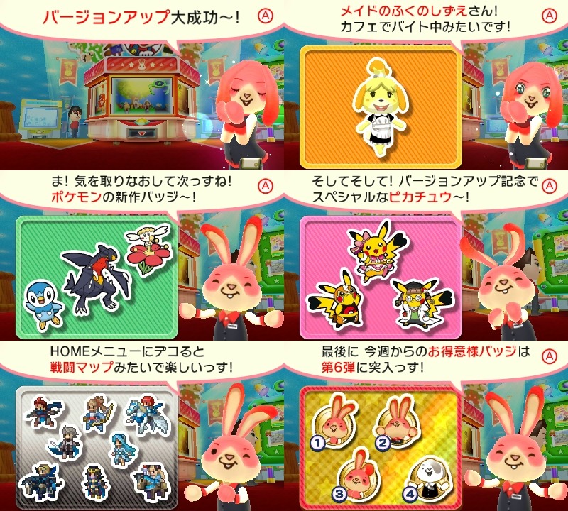 Nintendo’s Japanese 3DS download Collectible Badge Center has been updated once again. Today’s additions include one panel of Animal Crossing badges, six panels of Pokemon badges, and eight panels of Fire Emblem Fates sprites badges. Nintendo has also provided two free goes and a new set of Baito badges with four more to collect (one free for each 90 yen spent until November 20).