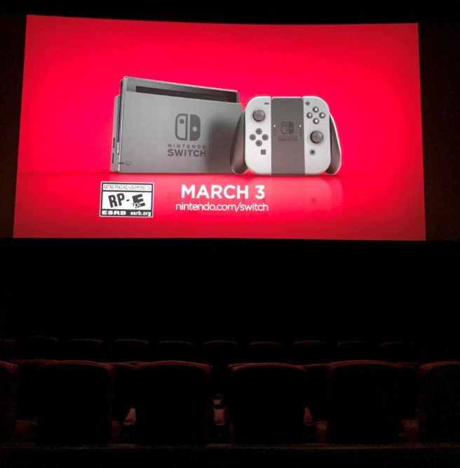 Nintendo has been advertising Switch in various away over the past couple of months. We can all likely agree that the company’s biggest effort was the commercial shown during the Super Bowl a few weeks ago. Aside from the advert shown during the big game, Nintendo is marketing Switch in other various ways. It appears that commercials are even airing in movie theaters at the moment.