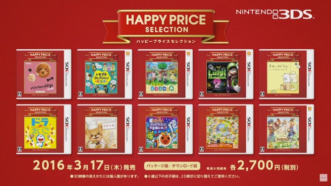 Several commercials have landed on Nintendo’s Japanese YouTube page for the new 3DS “Happy Price Selection” releases. All of them are posted below.
