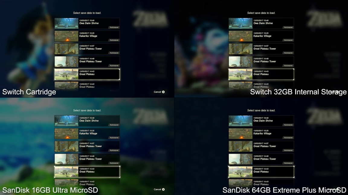 Digital Foundry published a new video today that compares the loading times on Switch. Zelda: Breath of the Wild was the test subject here. A cartridge, two types of microSD cards, and internal storage were used.