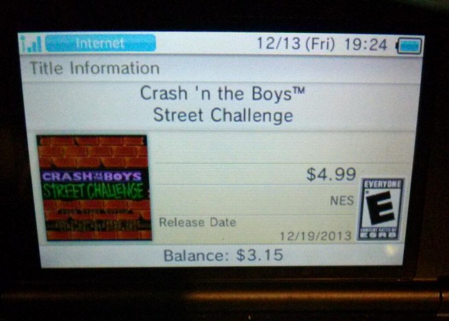 Crash ‘n The Boys: Street Challenge looks like it could be heading to the North American 3DS eShop next week. A listing on the digital store suggests that the game will launch as a Virtual Console download on December 19. Pricing is set at $4.99.