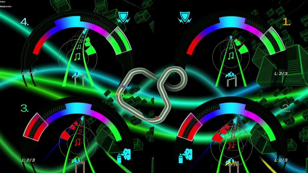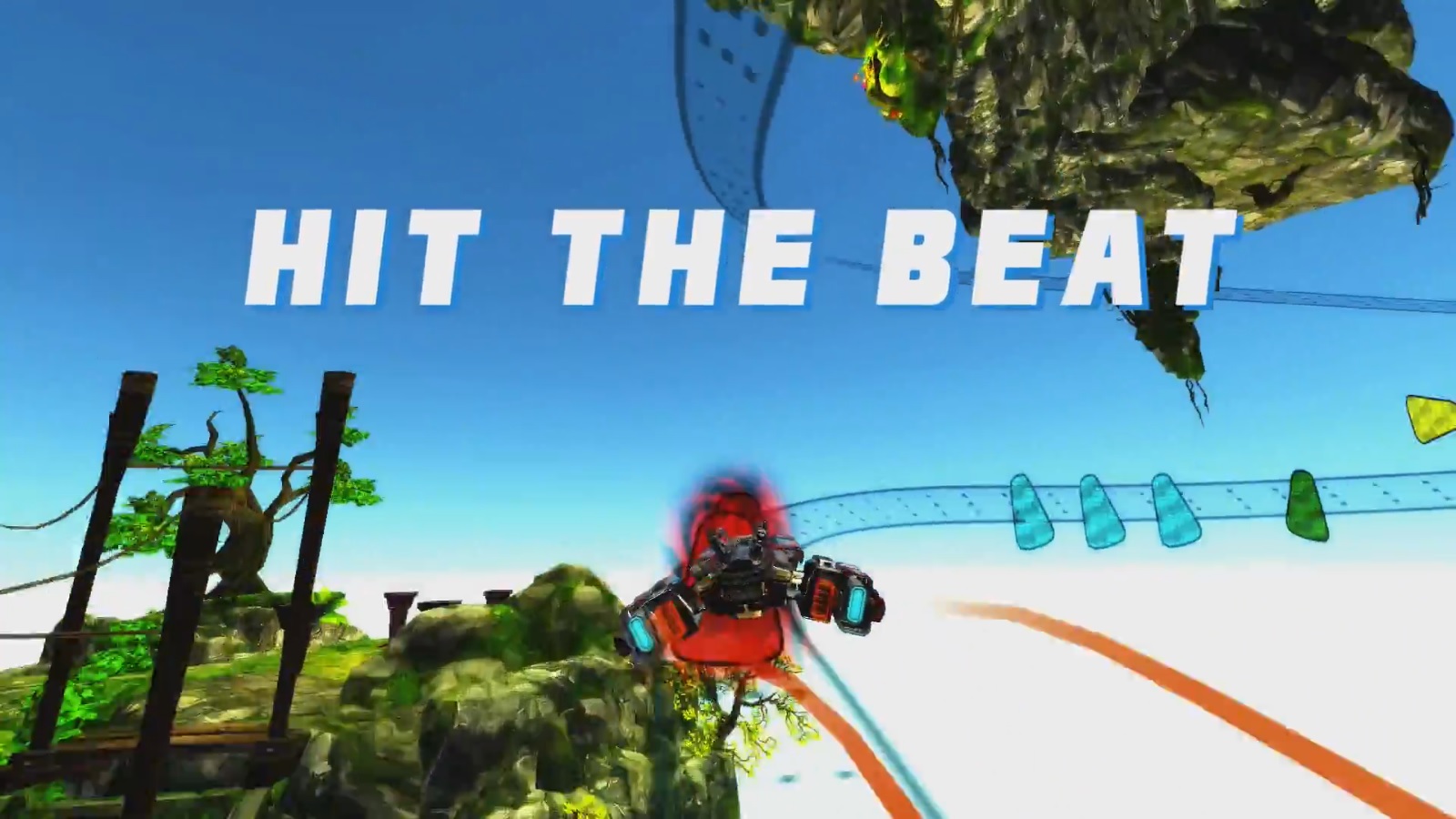 The point of Flight of Light is to race in time with the music. When you hit the beet, your vehicle’s speed will be boosted. Nine levels and local multiplayer will be included.