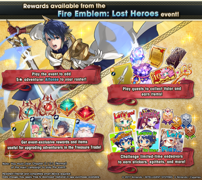 The Fire Emblem: Lost Heroes event revival starts Apr. 19, 11 PM PT. During the event you can get lots of event-exclusive rewards and items that will be useful in your adventures. You’ll also get to add a 5★ Alfonse unit to your roster by playing through the event.