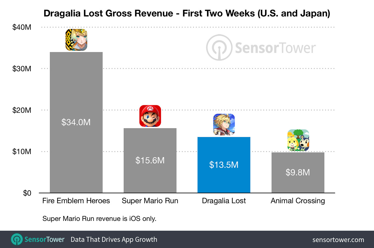 Sensor Tower has a new report on Dragalia Lost, Nintendo and Cygames’ mobile title. The headline here is that it has generated about $16 million in its first two weeks, outperforming Animal Crossing: Pocket Camp’s revenue of $9.8 million during the same timeframe.