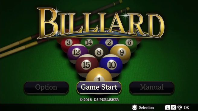 D3 Publisher is gearing up for another one of its Switch games. Billiard is planned for both Europe and Japan next week, and likely North America as well.