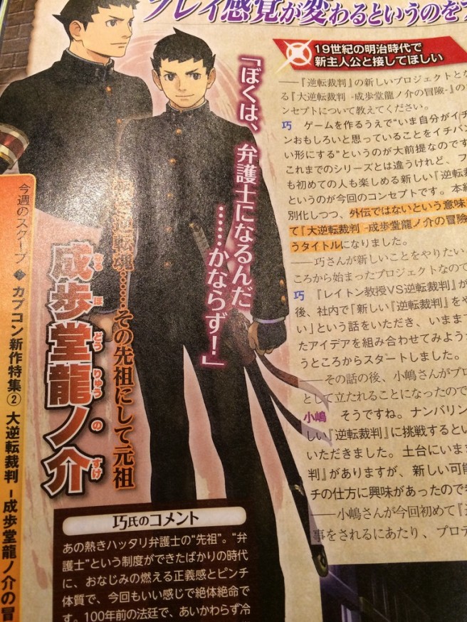 Capcom has announced the latest Ace Attorney title in this week’s Famitsu. It’ll be titled “Dai Gyakuten Saiban”, and is set in the Meiji era.