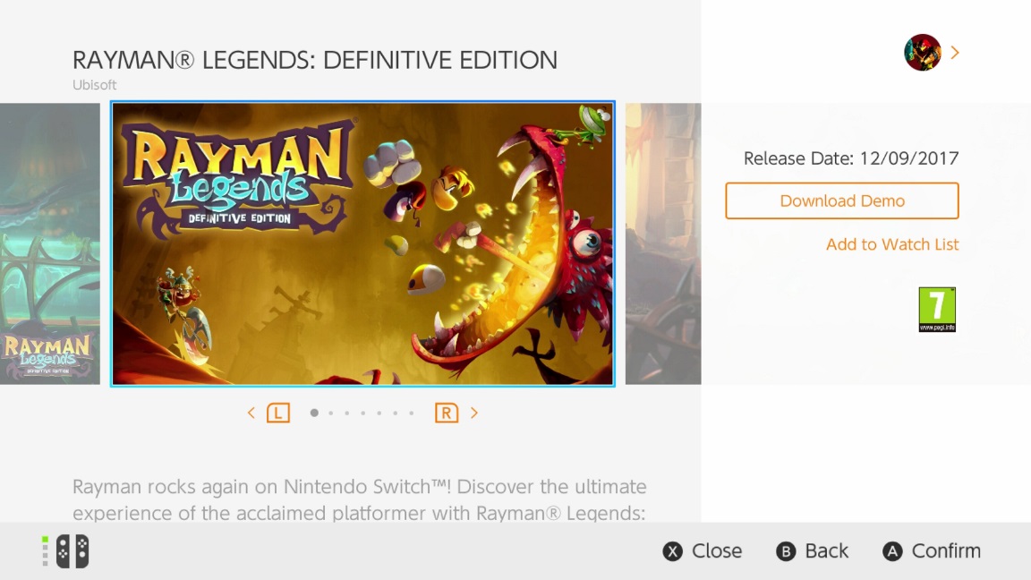 A demo for Rayman Legends Definitive Edition has unexpectedly been published on the European Switch eShop. It’s available for download right now, assuming you have 707MB of free space. You can download the demo in any region so long as you have a European Nintendo account.