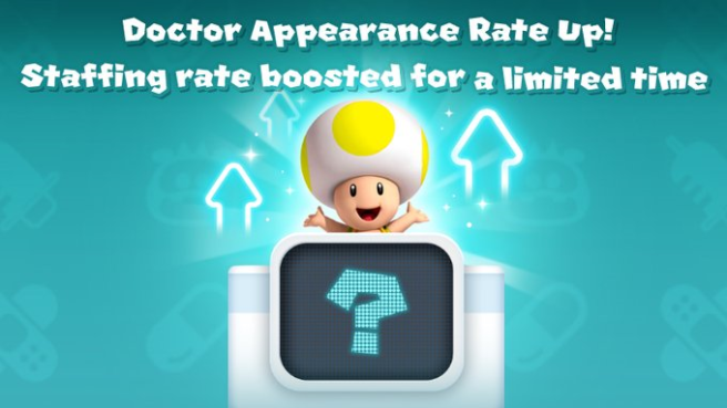 Dr. Mario World has introduced a limited rate up event. During this time, doctors are easier to staff. This event runs until until Jan. 29, 9:59 PM PT.