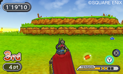 The Great Riders Cup are battles with up to four participants, each of whom rides a monster. The objective is to gather slimes that are spread around the field and carry them to your goal to rack up points.