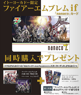 The Fire Emblem If news continues to roll right in. First up, we have a look at a new pre-paid card that can be used at all Seven & I Holdings-owned stores (Ito-Yokado and 7-Eleven) in Japan. The card will be included with the Fire Emblem 0 (Cipher), but will be limited in availability.