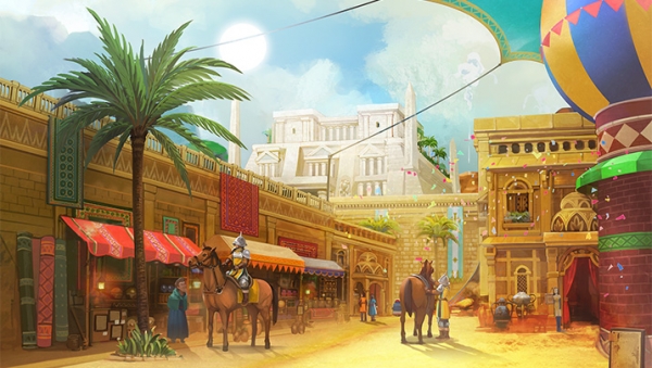 – Inside the castle, which is built like a temple, many knights push themselves in training, and in the town around the castle, a large crowd can be seen around the circus tent