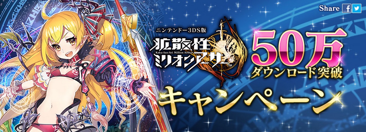 Square Enix’s Diffusion Million Arthur has reached 500,000 downloads, the company announced last week. The free-to-play 3DS game launched in Japan last October. There’s no word on Diffusion Million Arthur heading west at this time.