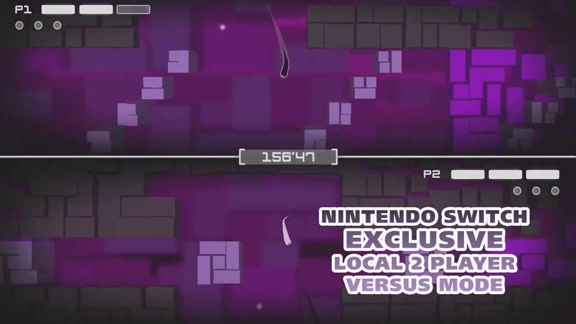 Race Mode pits two players against each other in an intense dash and dive to the exit portal. Races are held across a series of gorgeous, abstract courses, all of which need to be deftly navigated. Race Mode supports split Joy-Con play, so can still be enjoyed with a friend even if you have just a single Joy-Con.