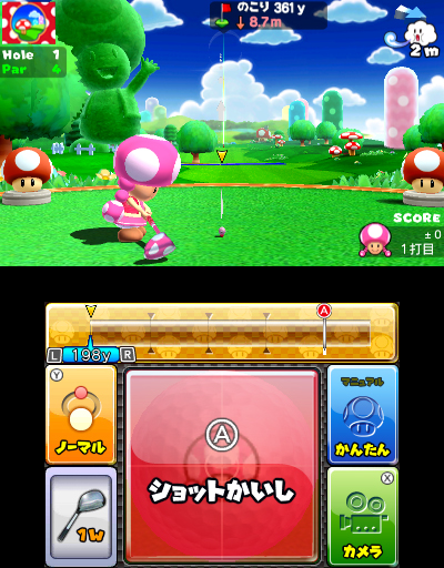 REDMOND, Wash.–(BUSINESS WIRE)–Nintendo is offering players the opportunity to nearly double the amount of content they can play in the Mario Golf: World Tour game, which launches May 2 for the portable Nintendo 3DS system. With 10 courses and 126 holes (an amount equivalent to previous games in the franchise), extensive multiplayer modes as well as regional and worldwide tournaments, the main game offers plenty of content for golf fans already. But players who can’t get enough golf and want to expand their experiences can purchase up to a total of 108 new downloadable holes and additional Mushroom Kingdom golfers. The DLC opens up further challenging courses for players to enjoy as they test their skills (broadband Internet access is required).