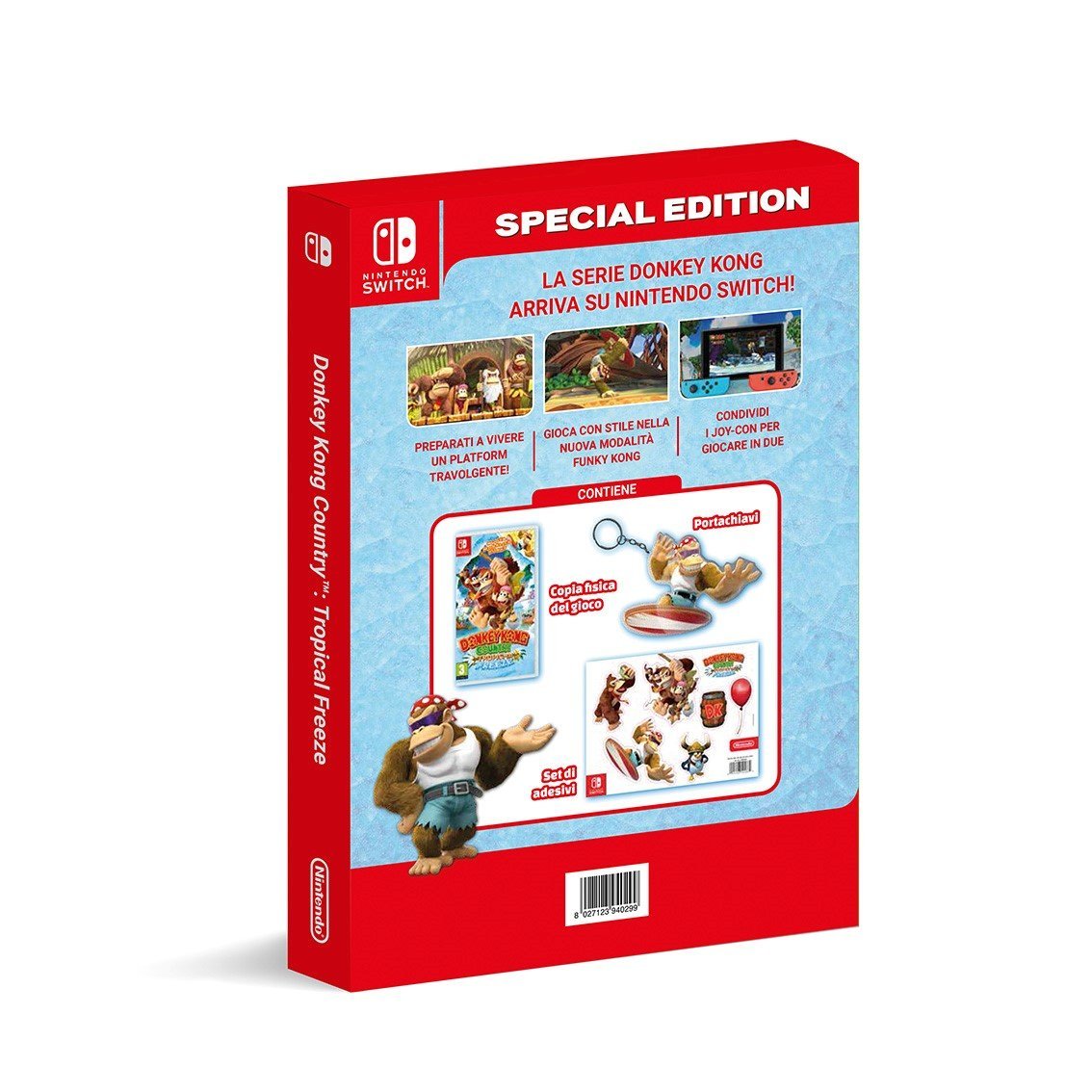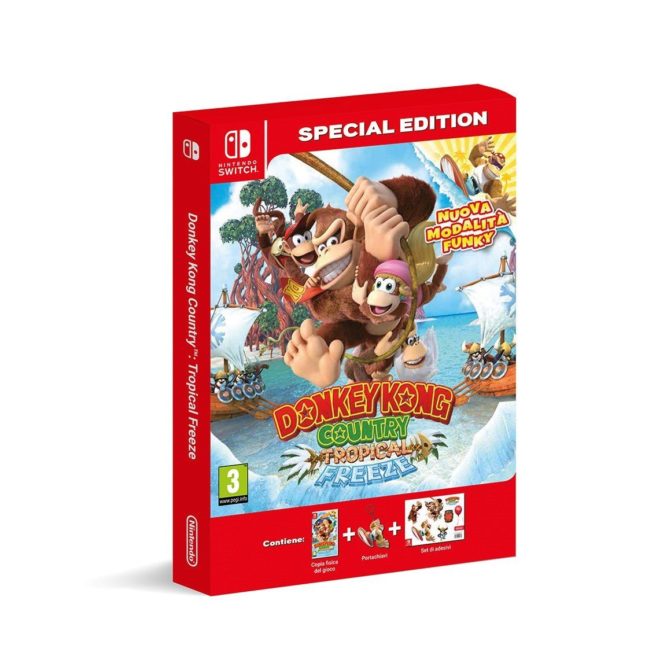 Amazon Italy is listing a special edition for Donkey Kong Country: Tropical Freeze on Switch. The package includes the game, a keyring, and some stickers. Pre-orders can be placed here.