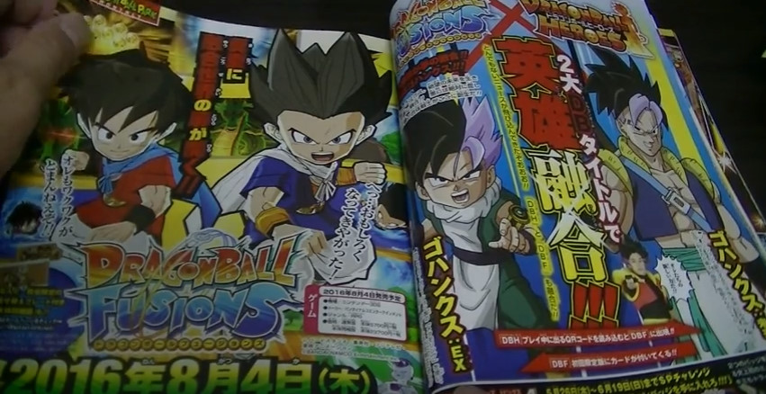 You can see the latest V Jump scans below. They’re unfortunately a bit hard to see, but they do show the Gohanks fusion and a look at the boxart and a New 3DS bundle.