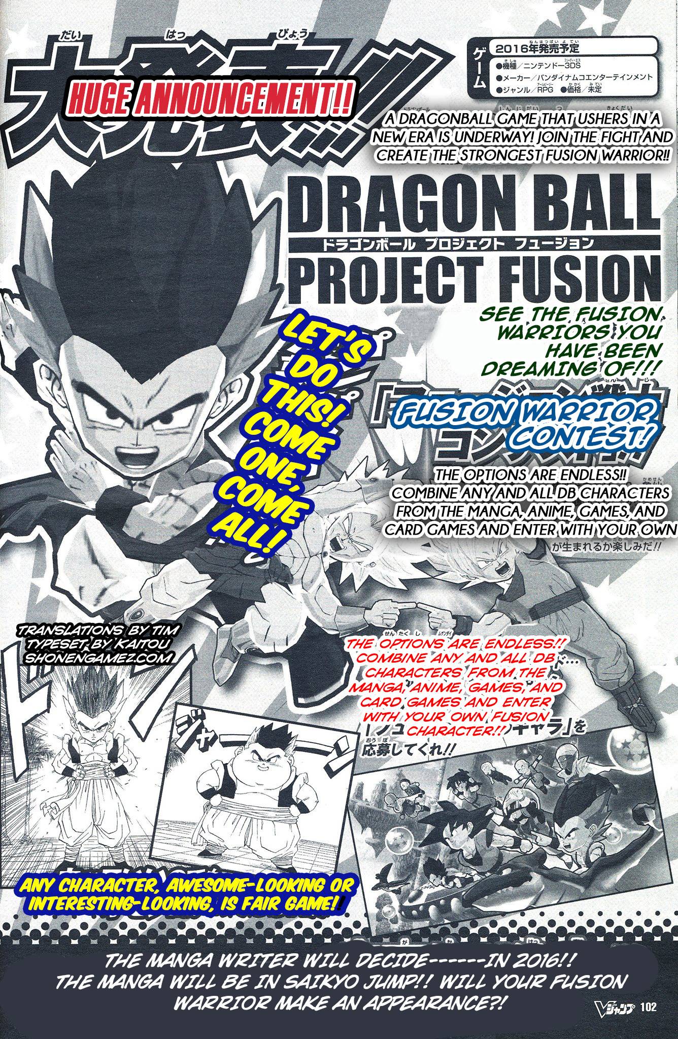 Original (1/22): ShonenGameZ posted another scan of Dragon Ball: Project Fusion from the latest issue of V Jump. We’ve attached it above.
