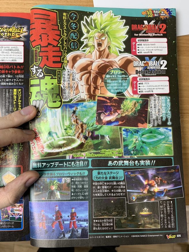 In this month’s issue of V-Jump, it was revealed that “Super Saiyan Fully-Powered” Broly will be joining the game as DLC. A scan from the magazine has now emerged. Get a look at the image above for a first look at Broly in action.