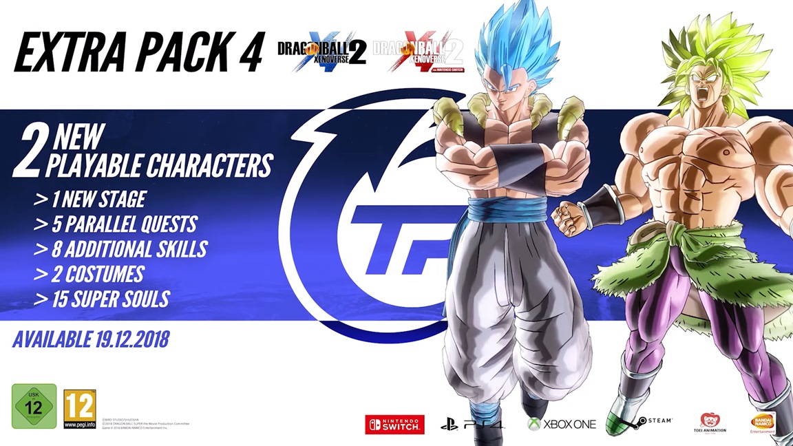 Bandai Namco is also gearing up for Extra Pack 4 this week. Japan is getting Super Saiyan God Super Saiyan Gogeta and Broly (Full Power Super Saiyan) on December 19, which could be as early as tomorrow in the west.
