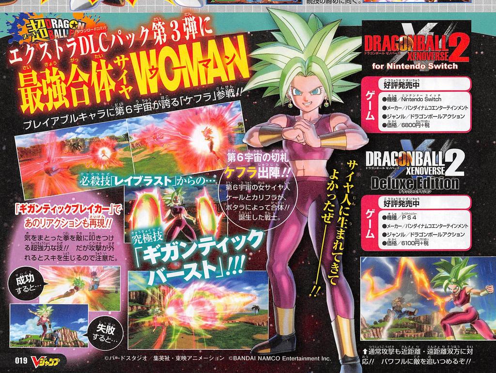The next DLC fighter for Dragon Ball Xenoverse 2 has been revealed in the latest Japanese magazines. Kefla is joining the game, Bandai Namco has announced. Her reaction on Gigantic Breaker will also be able to be seen in the game.